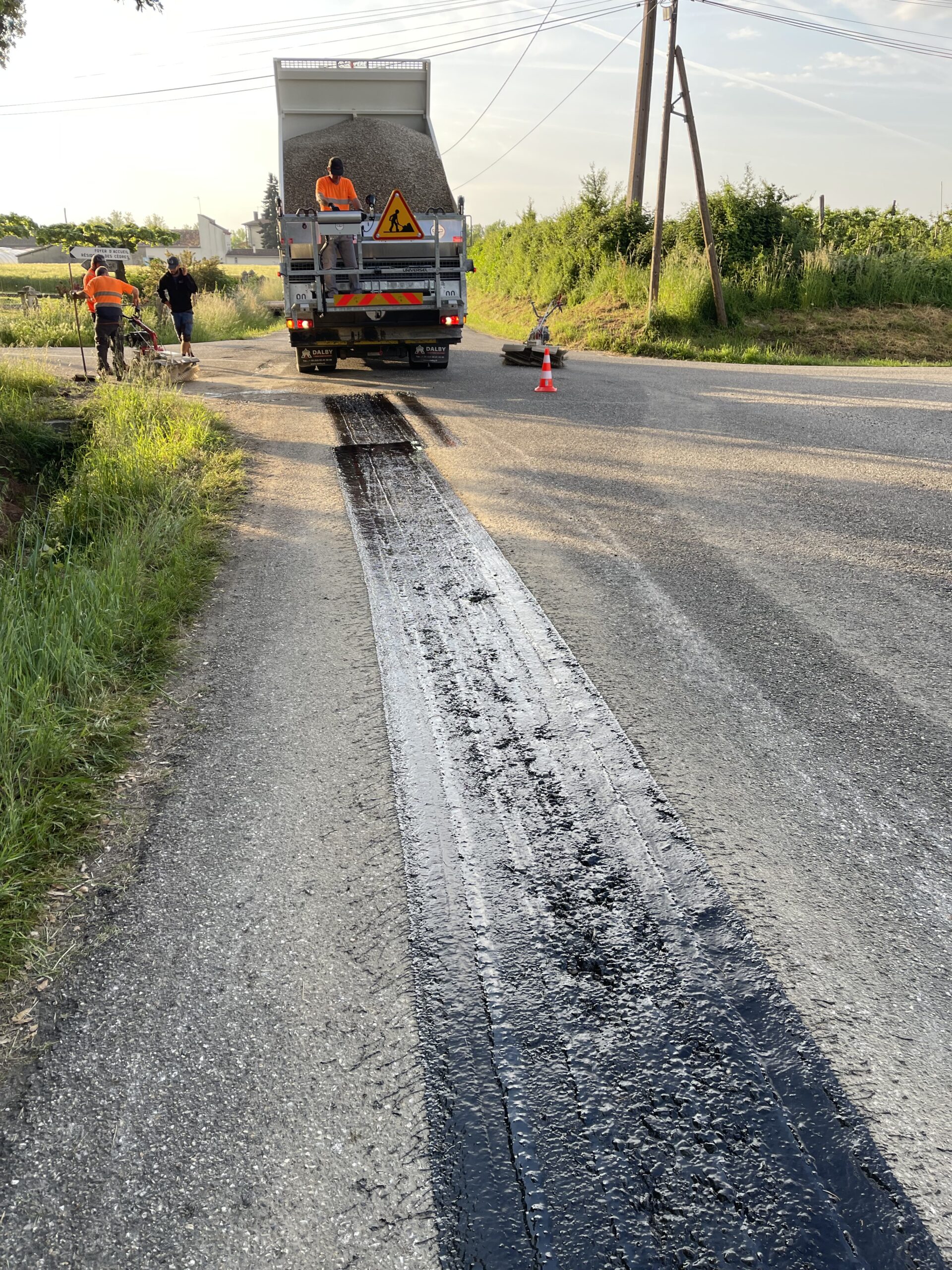 Travaux de goudronnage à Merle